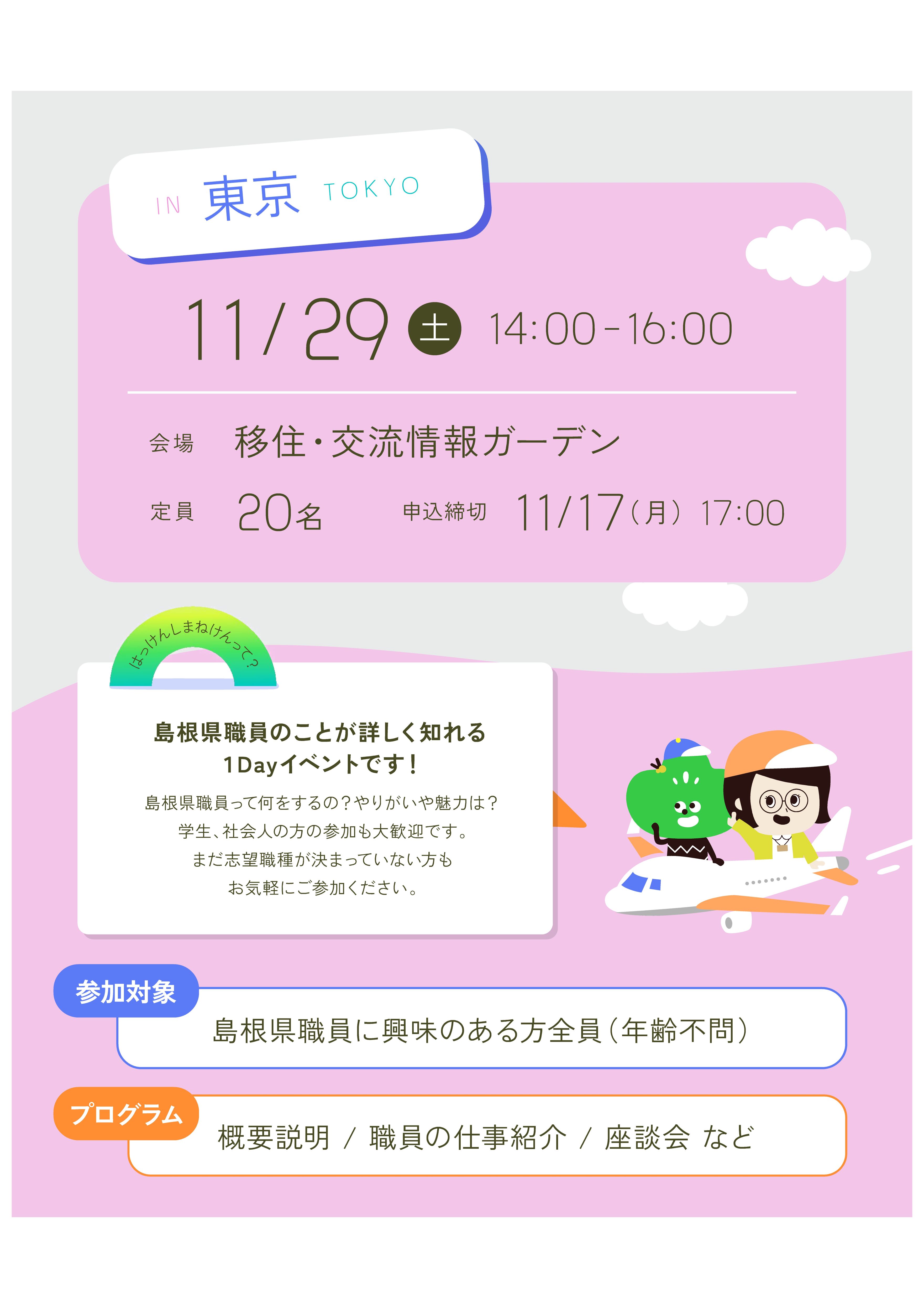 島根県職員のことが詳しく知れる1Dayイベントを東京で開催します!