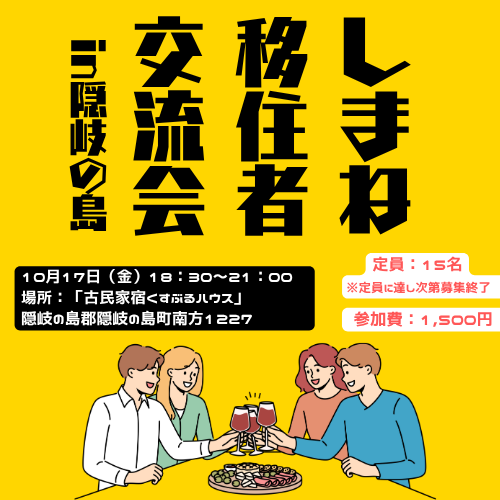 この度、「移住者交流会in隠岐の島」を開催しますので、ご案内します。
