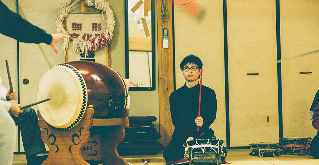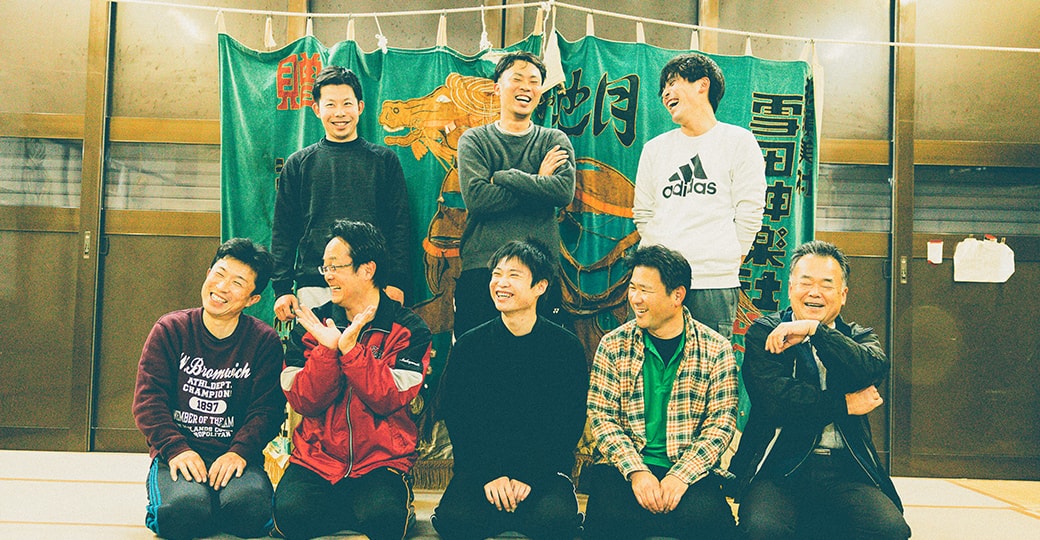 神楽団の空気はどんなものかと聞くと、「居心地がいいです。空気がいい。もちろん本番前は緊張感が漂いますけどね」。メンバーたちはみな幼い頃からの顔見知り。「昔は名前に〝兄ちゃん〟をつけて呼んでいた人もいるけど、もうお互い大人なので名前に〝さん〟づけです」。呼び方は変わっても関係性は昔と変わらない。メンバーには大西さんの親ぐらいの世代の人や、80 歳近い人も。息子や孫のように気にかけ、可愛がってくれる。