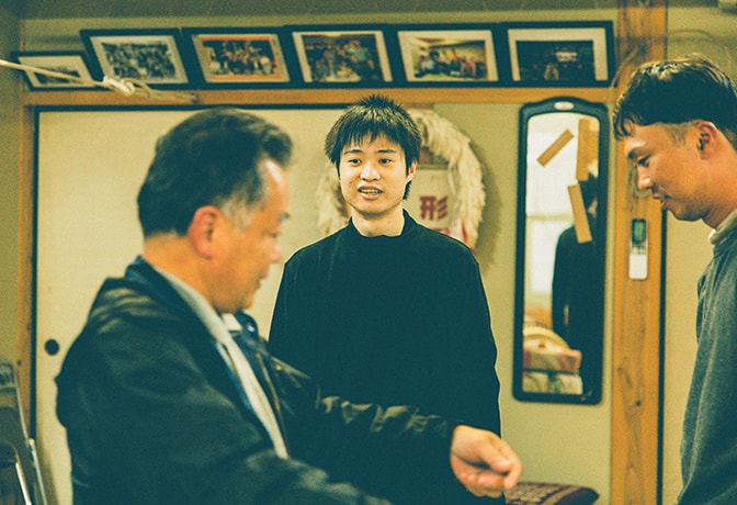 取材をした日の練習は夜9時からだった。団員たちは仕事を終え、夕食や子どもの世話などを一通りこなしてから集まる。大西さんも昼に電気機器の設置や配線工事を何件もこなし、家族と夕食を取ってからやってきた。団員たちはストーブを囲みながら地域の行事や仕事のことなど世間話に花を咲かせ、練習場には和やかな空気が漂う。