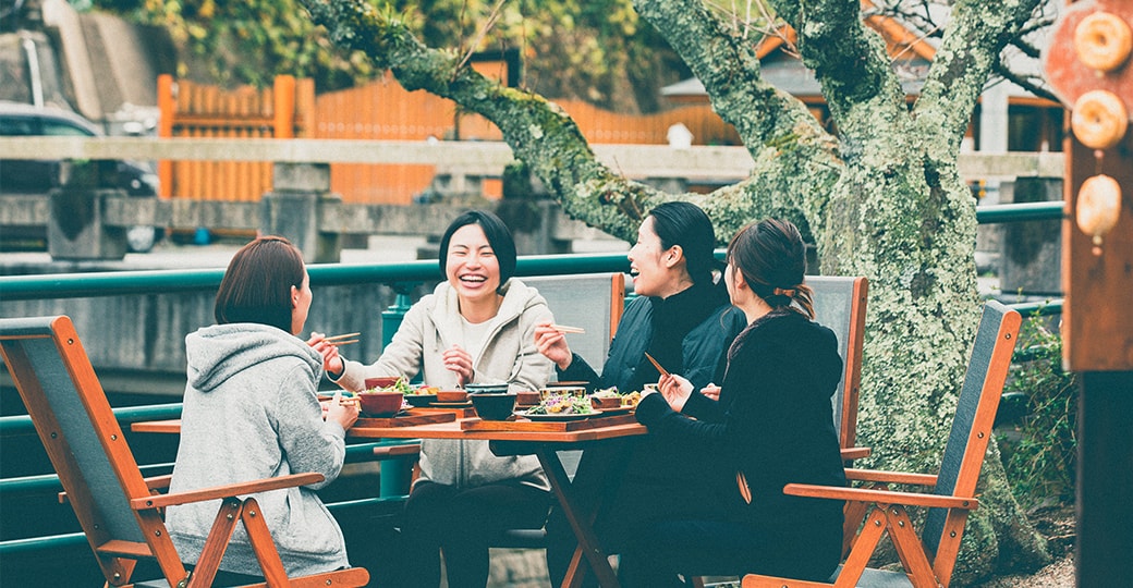 地元に帰ってきて中学高校時代の友人と会う機会が増えたといい、「休みの日は一緒にご飯を食べに行きます。一人で食べるより、みんなでワイワイ食べる方がずっとおいしい」とうれしそうにほほ笑む。会社の同僚とも仲が良く、温泉街にある無農薬野菜の手料理がおいしい食堂でランチするのが、休憩時間の楽しみだ。「島根は人と人の距離が近く、つながりやすい土地だなと思います。私もたくさんの方とのご縁をいただいたし、お店に別々に来られたのに、共通の話題で盛り上がってすぐに仲良くなられるお客様の様子を見て、縁結びの不思議な力を感じています」。