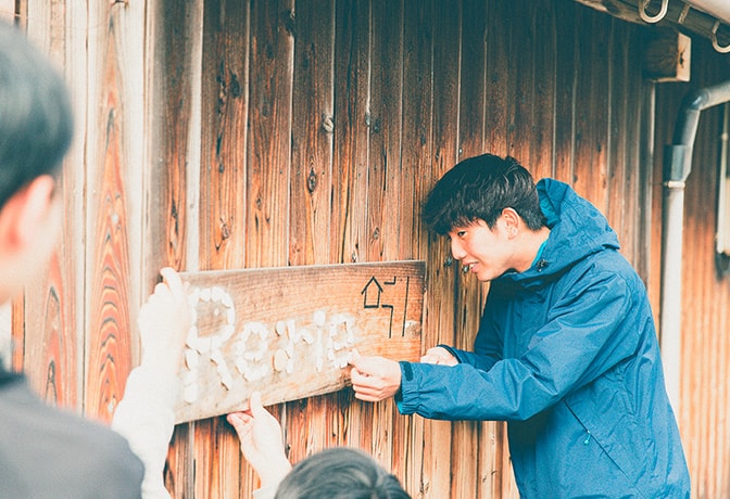 海での楽しみはもう一つ。浜田市の隣の益田市津田海岸にある「古民家ビーチハウス Re:rie 」の活動だ。大学のサークルではなく学生有志による自立した活動で、人口が減った町に賑わいを取り戻し、地域を元気にすることが目標だ。病院だった空き家を改装し、夏に海水浴客のための海の家としてオープン。音楽イベントや清掃活動なども行っている。活動には地域住民も参加しており、「大工さんに改装を手伝っていただいたり、人がたくさん集まる時は駐車や騒音などで迷惑をかけないように近所の方に声をかけてもらったり、一緒にイベントの企画をしたり…。すごくありがたい。地域の方も楽しんでくれているみたいで嬉しいです」。イルミネーションの設置や、サーファーが使えるようにシャワー室を作るなど、季節を通じて賑わい作りの取り組みも共同で進めている。