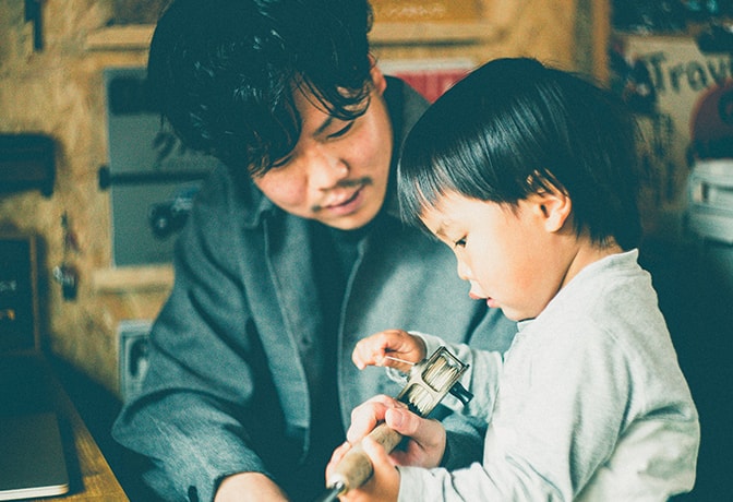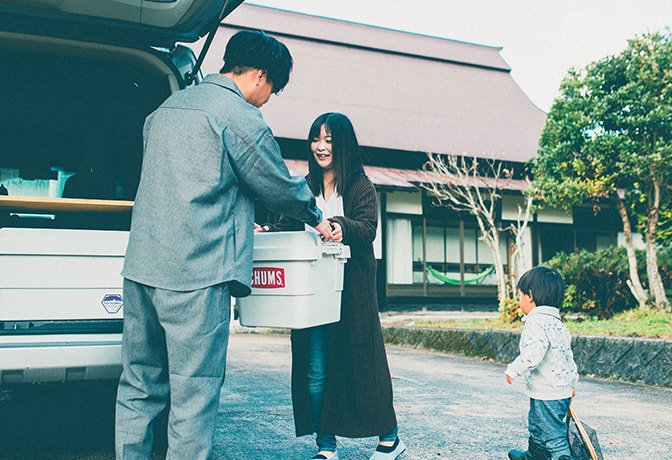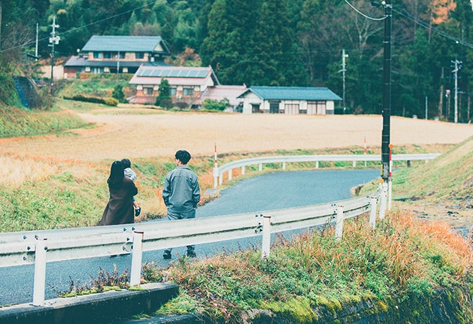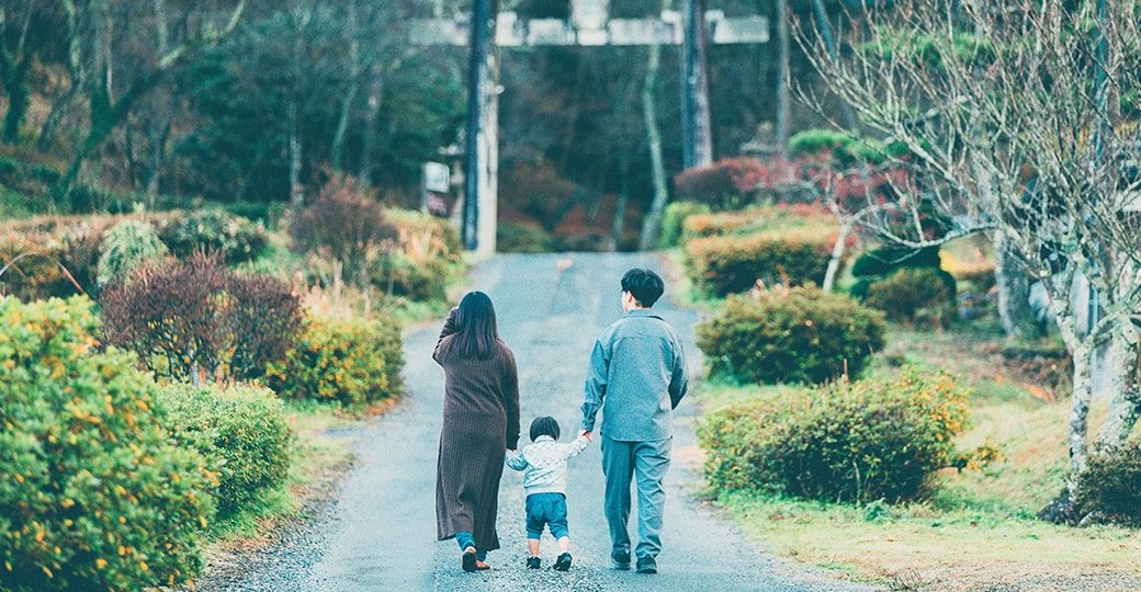 平井さん家族は広島県出身の優樹さんと、奥出雲町が地元の妻の千夏さん、3歳になる息子の遥樹くんの3人家族。千夏さんの祖父から受け継いだ平屋の古民家に1年前に引っ越してきた。小学校に上がる前の子供はここ数年この地区にいなかったため、近所の人たちは遥樹くんをとても可愛がってくれるという。「ハルくんと一緒に歩いているとよく声をかけていただきます」。時にはお下がりのおもちゃや野菜をもらうこともある、と千夏さん。「地域全体で子どもを育ててもらっている感じです」と優樹さんも話す。