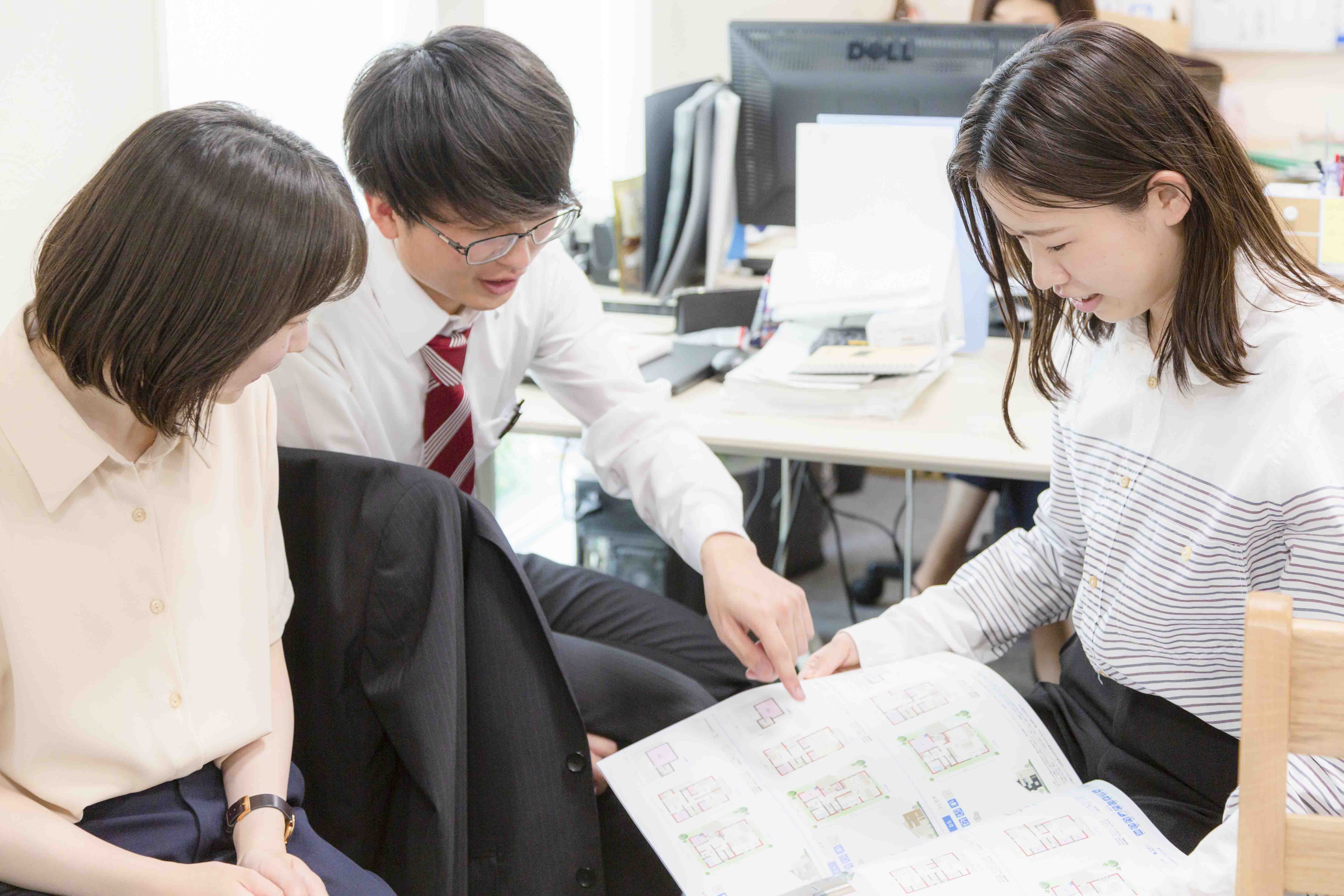お客様に寄り添い、理想の家づくりをサポートするお仕事です。展示場やモデルハウスに来場されたお客様のご要望をお聞きし、プランの作成、土地探し、資金計画など、家づくりのトータル的なご提案を行います |