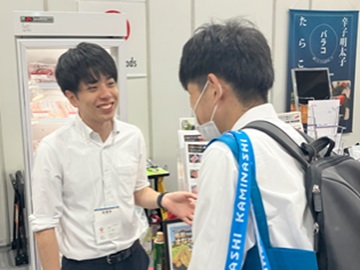 | 社員が語る仕事のやりがい | 大手コンビニと商談。鳥取県の漁港認定クリームコロッケとして、全国各地の店舗で販売されました。大きな仕事から、1・2ケースの注文まで、楽しんで仕事をしています。 |