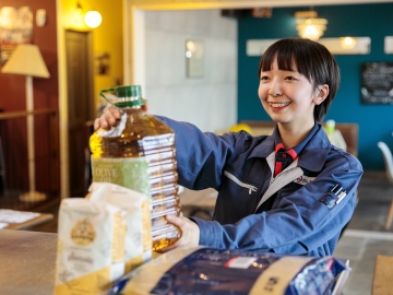 山陰全域(鳥取県・島根県・岡山県・兵庫県北部~京都府北部)を販売エリアとし、外食・中食・給食関連のお客様へ業務用食材を供給しています。取扱商品は畜産・水産・農産品・調理冷凍食品・乾物・調味料などの一般食品、医療食、飲料・酒類、アルミホイルや洗剤などの厨房関連商品を含め、約3万アイテム。食材のお届けだけでなく、メニュー等に関してヒアリングや提案を行い、食のプロの良きパートナーとして地元の暮らしと食産業をつくりあげます。