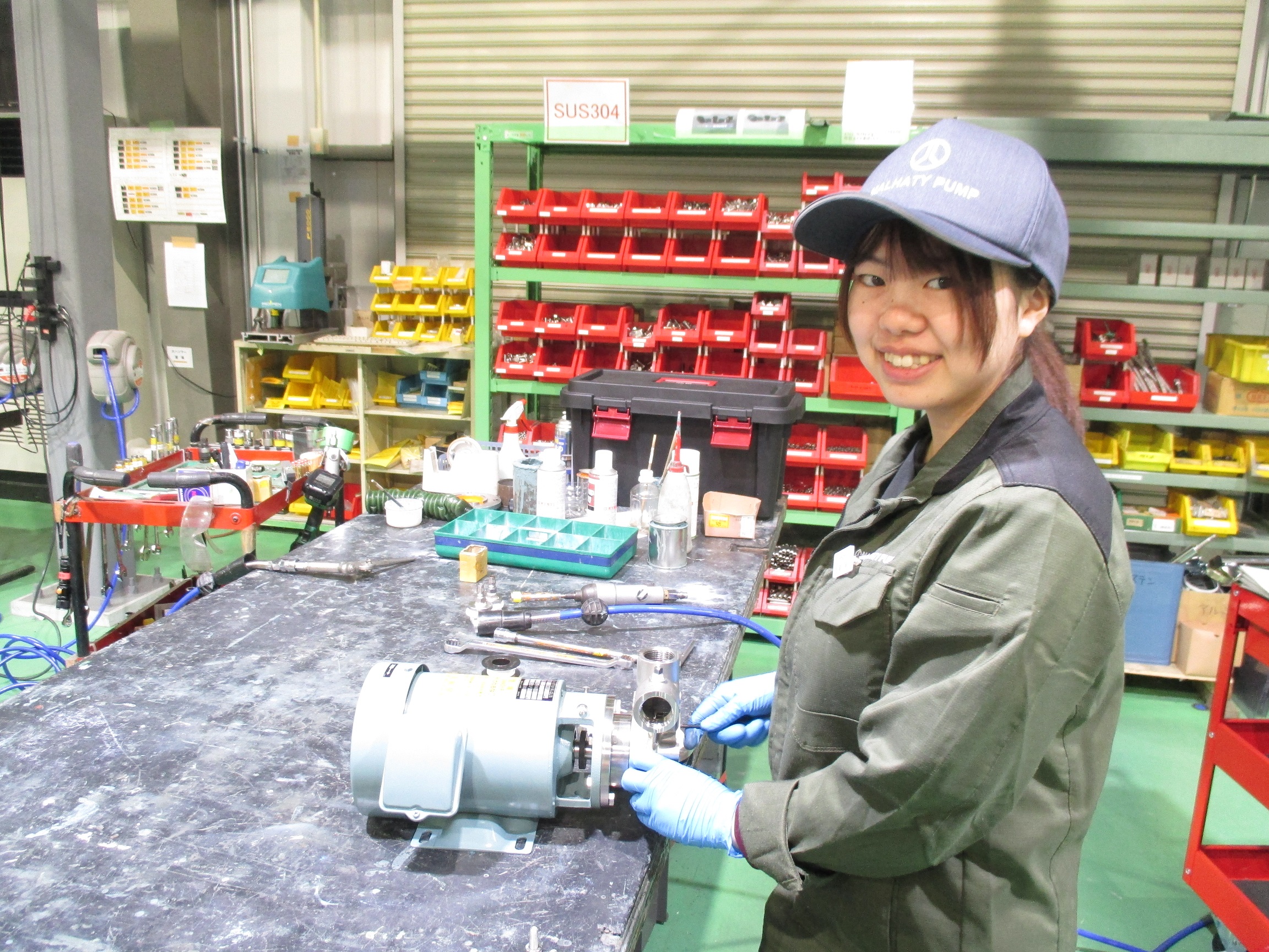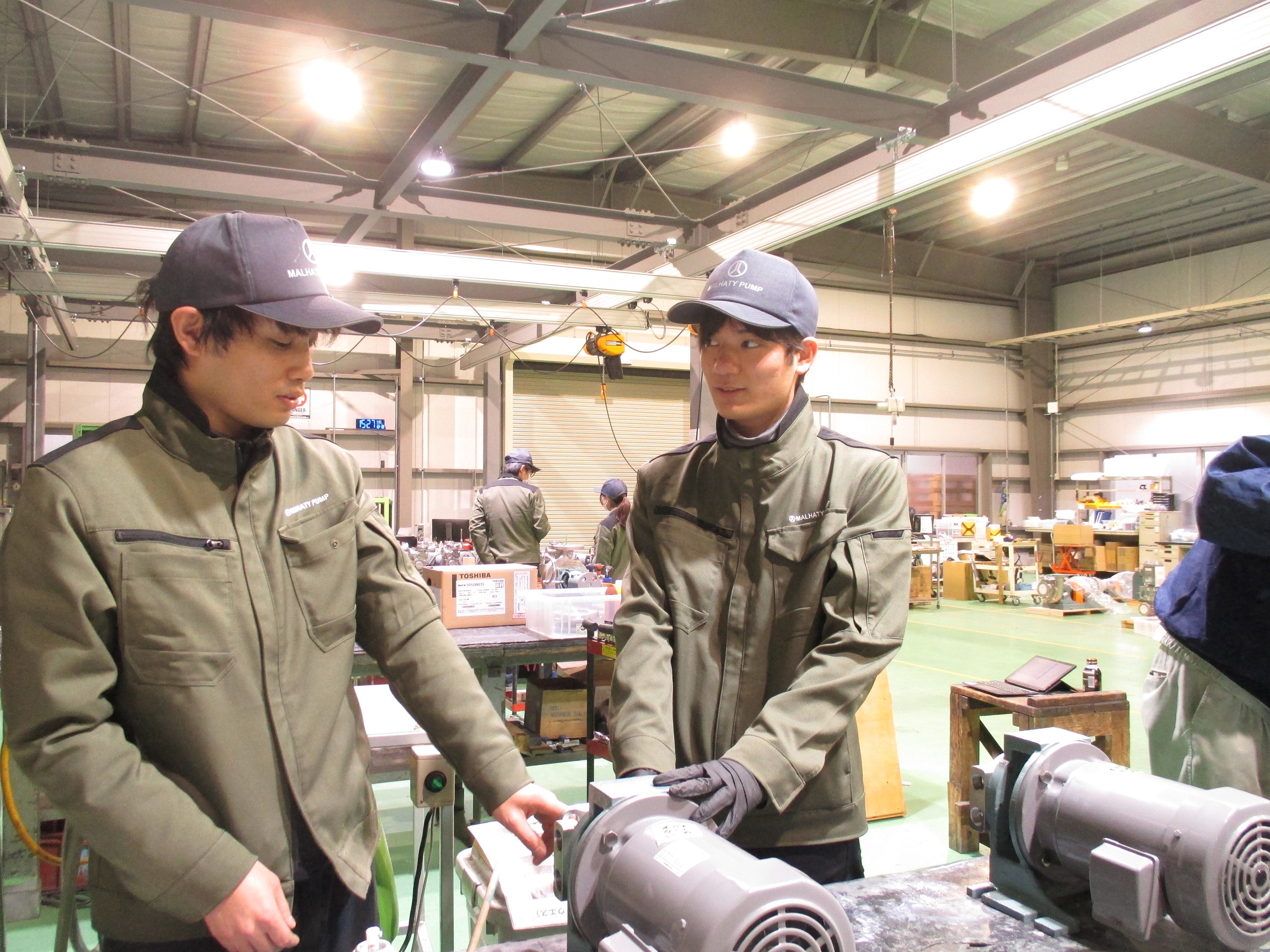 | 先輩からのメッセージ | 入社半年間は研修を行います。ポンプの知識が無くても問題ありません。研修しながら一緒に覚えていきましょう。 |