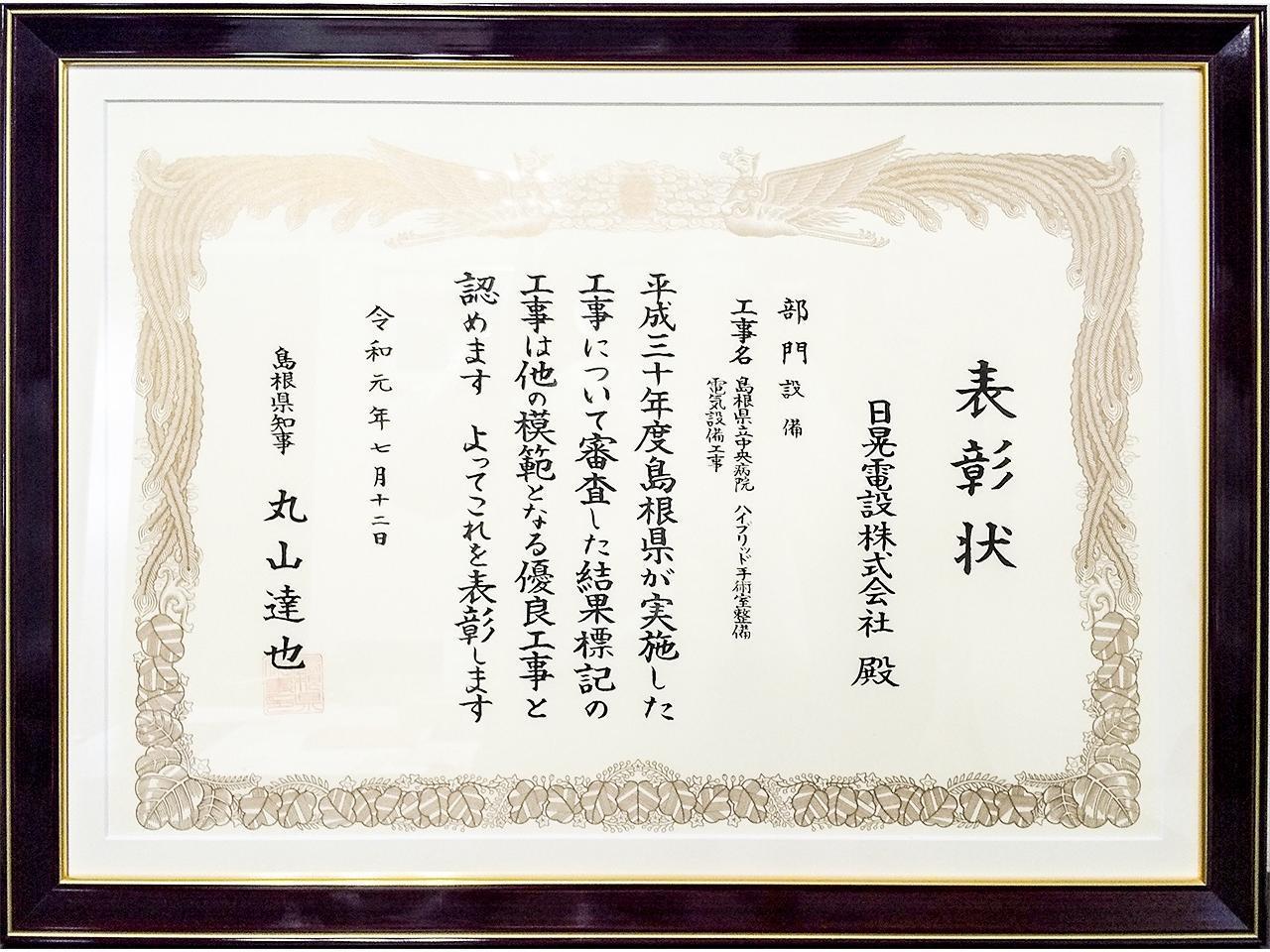 | 事業内容 | 日晃電設では住宅・店舗・マンション・介護施設・オフィスビル・事務所・工場・学校・病院等、暮らしに身近な建物に関する電気工事を行っています。40年以上の実績を持ち、これまで数々の施工が島根県、出雲市の優良工事として表彰いただいてきました。優れた技術で地域に安心の光を灯すことのできる会社です。 |