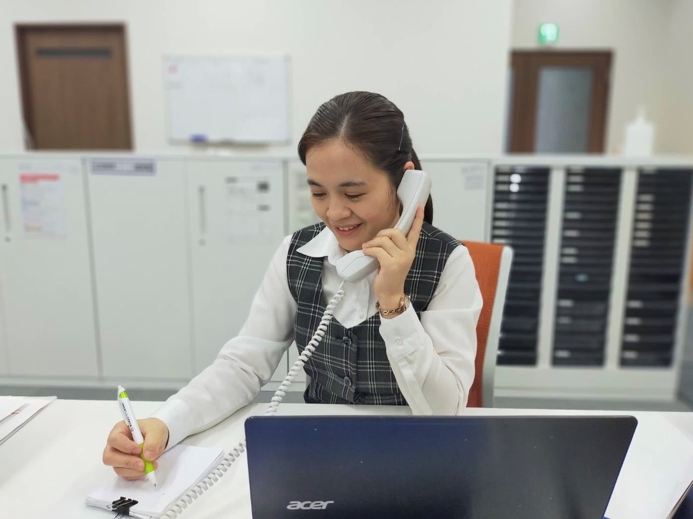 そんな製造現場を陰ながら支えるのが総務事務員です。弊社の事務員は人数が少ない分、一人ひとりが様々な業務に携わるので、多くの経験を積むことができます。
