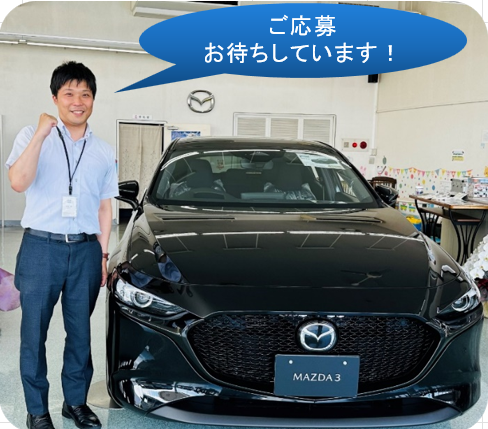 応募書類送付先 〒683-0802 担当者名 木下 有紀 電話番号 0859-36-9055 FAX 0859-34-5550 メールアドレス kinoshita.yu@mazda-dealer.jp |