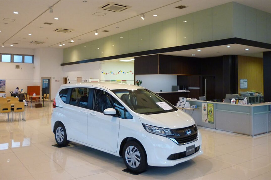 弊社は社名のとおり、ホンダ車の正規ディーラーでして、新車・中古車販売や、整備・ボディサービス・自動車保険代行業などを一手に請け負う会社です。実は同じ松江市内、しかも同じ国道9号線沿いに、ホンダの正規ディーラーが3社ございまして、やや紛らわしいのですが、弊社は「東津田店」になります。各店舗の運営はそれぞれ全く別の会社が行っております。