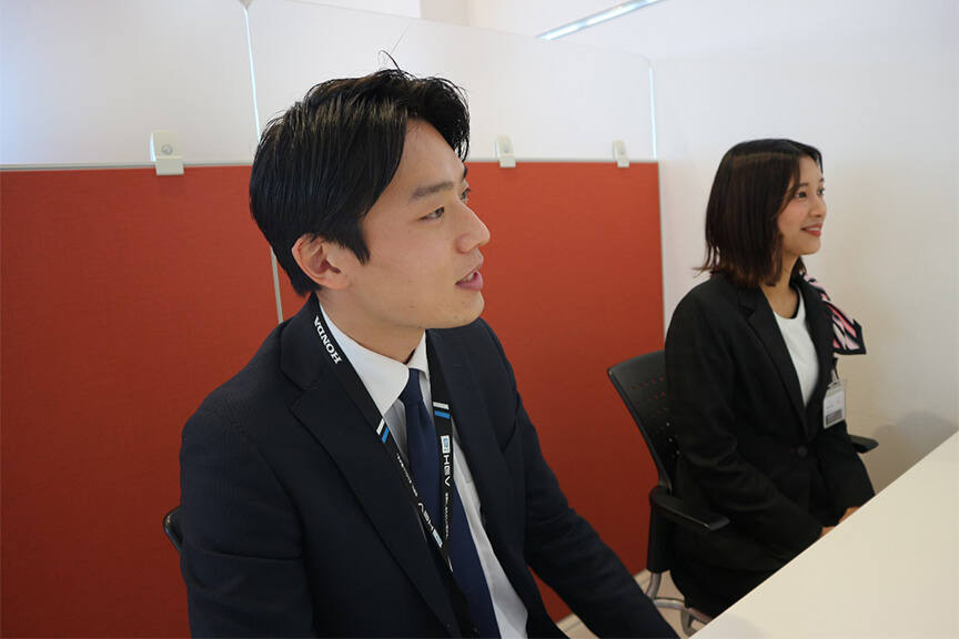 より働きやすく、風通しの良い職場づくりを目指して、様々な取り組みを推進しているホンダカーズ松江。そんな職場に魅力を感じ、県外からIターンで入社した若手社員2名にもお話を伺いました。