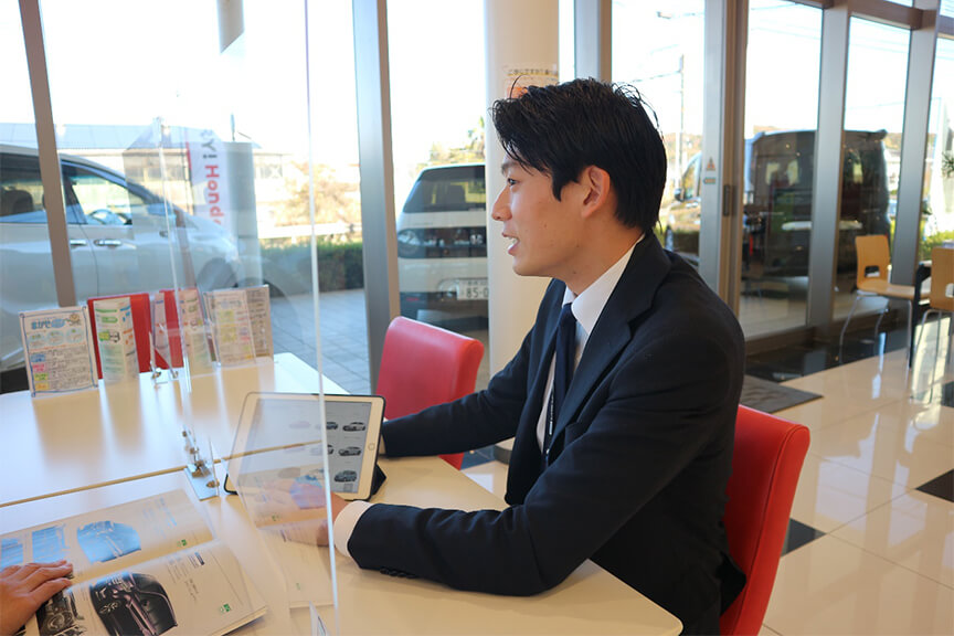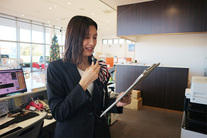車の知識は全くなかったのですが、人と関わる仕事に興味もあり入社したのがきっかけです。私自身、元々人見知りがあるほうでしたが、前職で大阪で仕事をしていた時期に人との関わり方の変化もあって、現在まで頑張れたと思います。