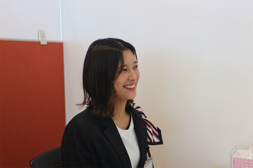 それで、事前にこの会社の職場見学をさせてもらったとき、お店の雰囲気が良かったのと、受付の先輩方がとても丁寧に対応してくださったことが入社の決め手になりました。これまでやったことのない事務職もしなければならないことが唯一不安でしたが、高校でパソコン学科だったこともあり、割とすんなり慣れたと思います。