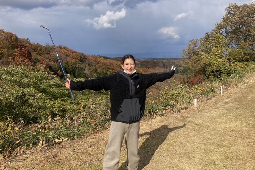 最近趣味でゴルフを始めたんですが、仕事もだいたい18時には終わるので、仕事終わりに気軽に近くの打ちっぱなしにも行けてしまうところがすごく気に入ってます。先日、休日に初めて米子市のショートコースにも出ました!
