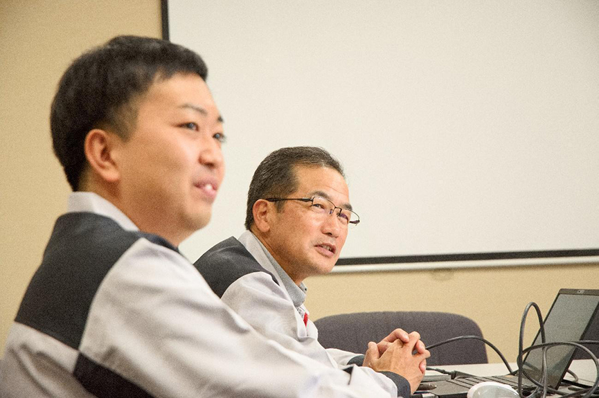 隣に座っている森下君も、Uターンで入社した1人です。彼も今、試行錯誤の最中でしょうか (笑)。鳥取県の大学を卒業後、島根県に戻り、さまざまな経験を得て、現在弊社で活躍してくれています。