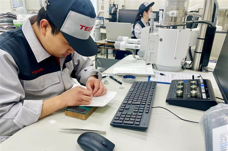 当社の人工皮革、フィルム素材は、まさに世界に誇れる製品であり、私もその開発に携われていることを心から誇りに思っています。帝人コードレには、素材を知り尽くしたプロが集結しており、学ぶべき技術、ノウハウが豊富に蓄積されています。ここでなら、きっと互いに成長できるはずです。もし当社に少しでも興味をお持ちいただけたなら、ぜひ一度、足を運んでみてください。