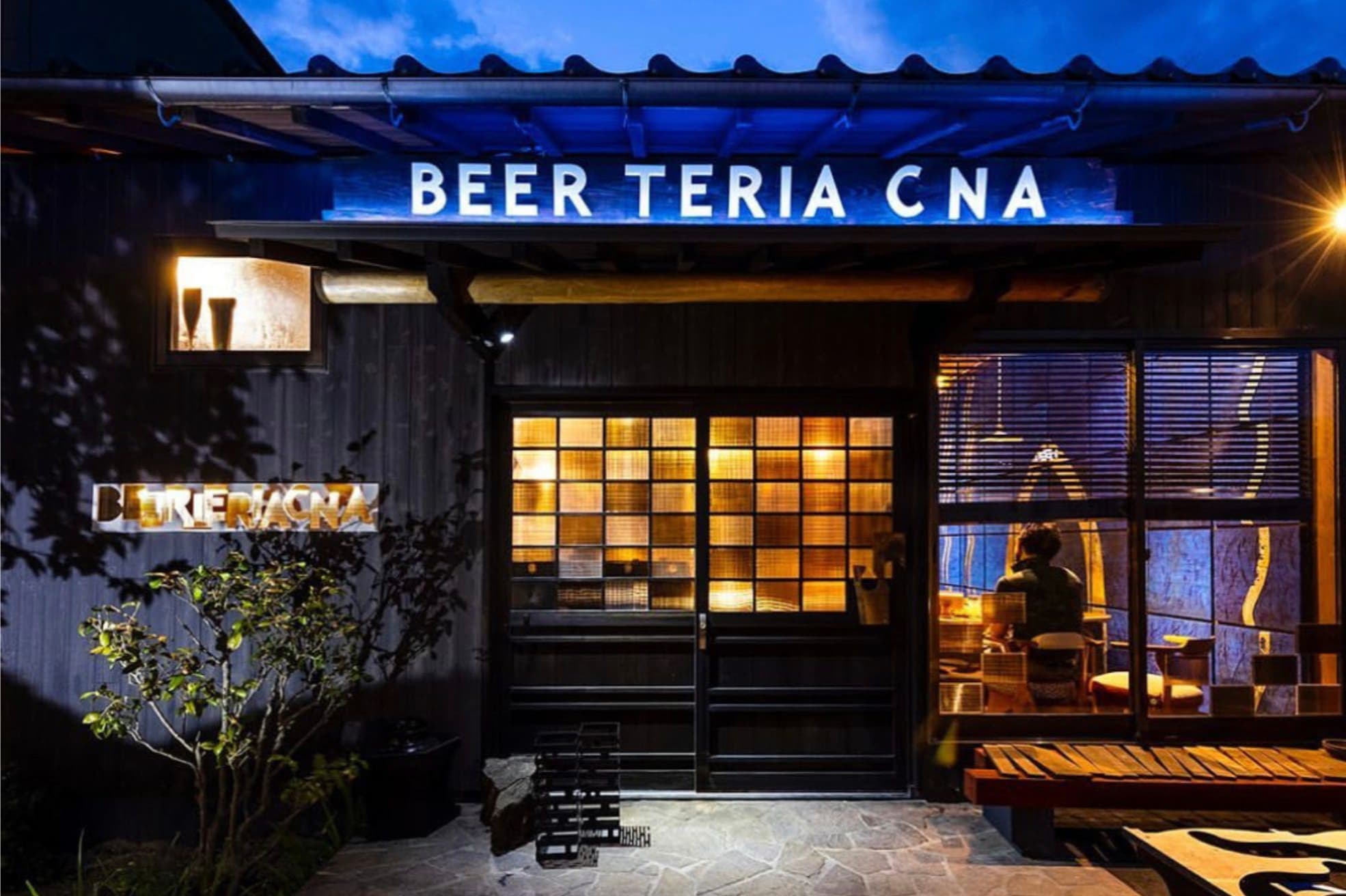 「カフェやレストランに行くように、気軽にクラフトビールを楽しんで欲しい」という店主の思いから、「Beer」+「Cafeteria」の造語『BeerTeria(ビアテリア)』と、店主の名字『CNA(椎名)』を組み合わせてお店の名前が付けられました。「地元の方々が県外に自慢できるようなお店、クラフトビール愛好家も行ってみたいと思えるお店を目指している」と目標を掲げます。