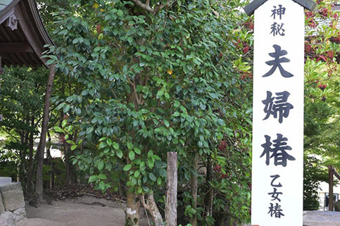 八重垣神社といえば「夫婦椿」も有名で、2本の木が芽吹いて一体となった姿は、まるで仲むつまじい夫婦のような姿をしています。