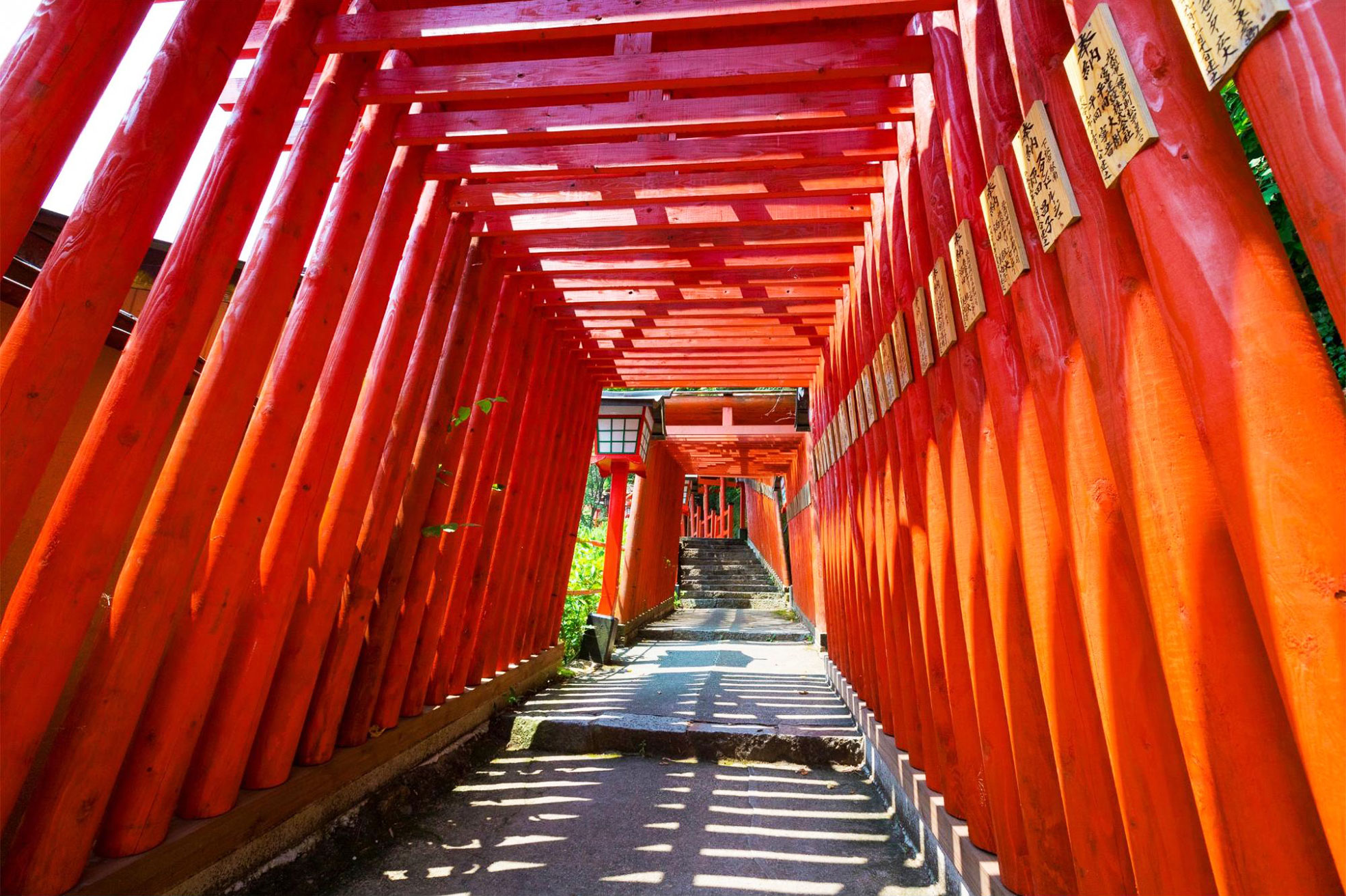 参道を埋め尽くす千本鳥居をくぐりながら石段を上る道のりは、まるで異世界へ続くよう。