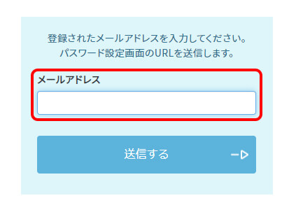 - 2.「メールアドレス」欄に登録メールアドレスを入力し、「送信する」ボタンをクリックしてください。