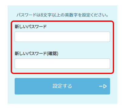 - 4.「パスワード再設定」画面が開いたら、新しいパスワードを2回入力して「設定する」ボタンをクリックしてください。