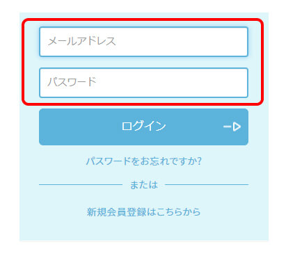 - 5.パスワード再設定が完了すると、ログイン画面が開きますので、メールアドレス・新しいパスワードを入力のうえログインしてください。